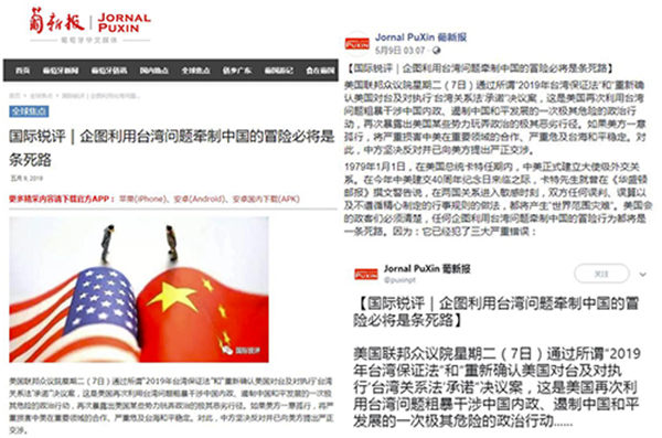 《葡新报》APP(facebook账号、twitter账号)5月9日转发