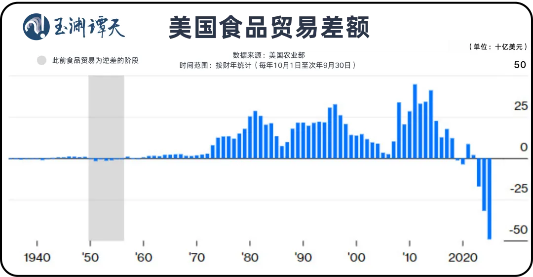 根据美国农业部的预测,今年美国将连续第三个财年出现食品贸易逆差,这还是过去70年来首次,进口额将超过出口额近500亿美元。