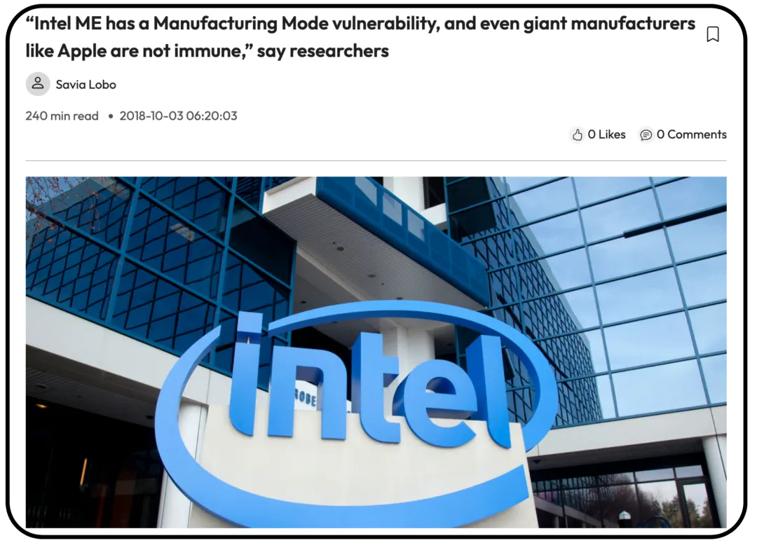 ||“追踪定位”功能与英特尔管理引擎中的远程识别功能类似。2018年,这一功能引发了计算机“后门”安全性的讨论