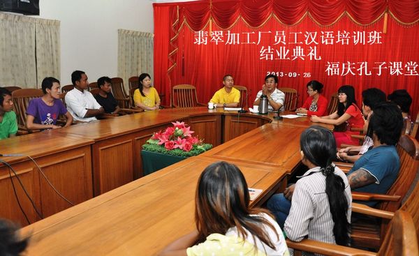 首届翡翠加工厂员工汉语培训班结业(福庆孔子课堂 林嘉玉报道;侯宝强摄影)