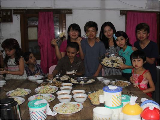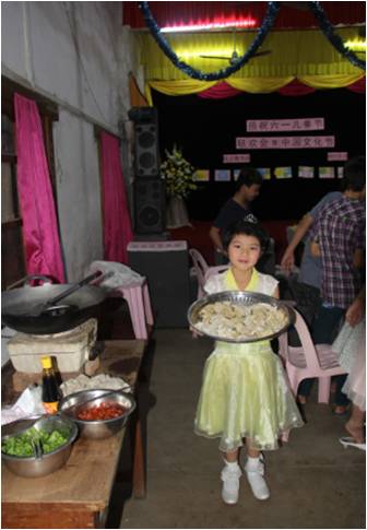 活动于2014年5月11日下午4时举行,内容包括包饺子、做炒面,还有剪纸。还不到下午4点,教学点的孩子们早已到来,他们亲手包饺子、做炒面、做剪纸并与老师、家长一起品尝和欣赏他们自己的作品,乐成一片。现场热烈气氛,孩子们的作品别具一格,使他们沉浸在中国文化之中。