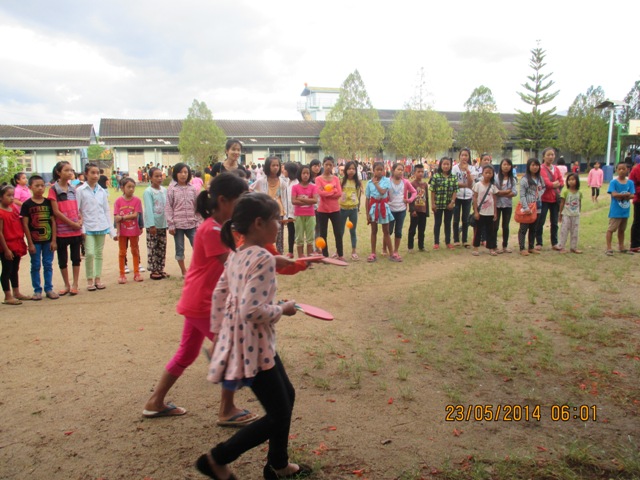 5月23日清晨,景栋中文会话培训中心校园内笑语不断,生机盎然,为了迎接5月25日周年校庆,学校举办了“游园活动”,活动项目包括:猜谜语、投小篮球、投篮球、拍乒乓球跑、捡土豆、挟弹珠、吹气球、咬糖果、抢凳子、传球比赛等。