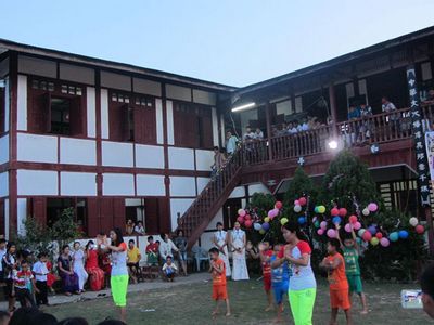 2014年5月31日(星期六)下午4:30,在八莫佛经学校校园草坪上举行“庆祝2014年六一儿童节联欢会”。八莫云南会馆会长及会员们、本校董事会成员、家长、师生共450余人参加此活动。首先本校董事会给光临客人宴请午点饵丝风味小吃。接下来全校师生们表演节目,精心准备的节目共有23个,中国文化舞蹈:青花瓷、中国功夫;缅甸少数民族舞蹈:景颇舞、傣族舞以及现代舞、话剧、幼儿班学生走秀和六一儿童节大合唱。活动中间,本校董事会成员给每位学生颁发儿童节节日礼物,孩子们满面笑脸就接受了礼物。