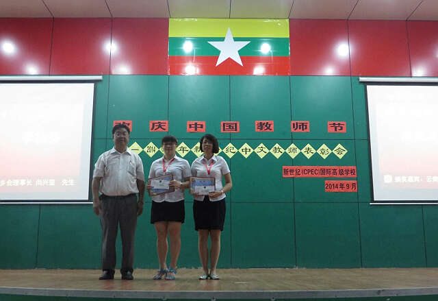 活动中,总领事王愚、曼德勒云南同乡会尚兴玺理事长与学校董事长张旺后先生受学校邀请为该校2013-2014学年度的“新世纪华文教育优秀管理人员”和“新世纪华文教育优秀教师”颁发了荣誉证书和每人15万缅币的奖金。