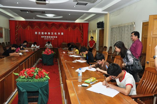 中华文化大赛是中华人民共和国国务院侨务办公室、中国海外交流协会主办的一年一度的比赛。今日的比赛分为两大部分,一是笔试,二是才艺比赛(才艺比赛于之前,已在各地区华校单独举行,今日是统一的笔试)。通过比赛,经过专家教授的分析评分后,成绩优秀的学生及才艺突出的学生们,将有机会前往中国参加国际性总决赛。