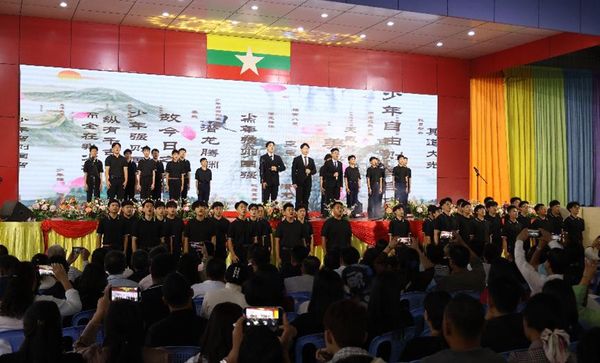 最后压台的节目是六年级至高二学生共同表演的诗朗诵《强国少年》。他们以铿锵有力的声音,抒发了宏大高远的抱负,展现了青少年愿为缅甸富民强国而努力的雄心壮志。震撼人心的表演让全场观众不禁欢呼鼓掌,深受感动。汇演在热烈的掌声和满满的感动中圆满落下帷幕,给所有观众留下了难以忘怀的深刻印象。
