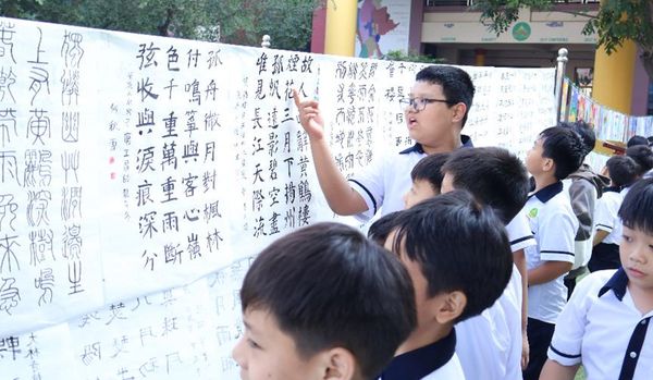 在教学成果展示和书画展环节,以学生作文获奖展、国学诵读和书画作品展等多种形式,全面呈现了他们的学习成果与艺术才华。小学低年级和幼稚园的小朋友齐声背诵《弟子规》、《三字经》和《增广贤文》,声音洪亮,普通话标准,稚嫩中透着自信,赢得了全场观众的热烈掌声。展板上展出的优秀作文,则集中展示了学生们发表在各大媒体上的作品以及在各类比赛中获奖的佳作,充分体现了他们在语言学习和文学创作上的不凡实力。此外,书画展汇集了学生们日常创作的书法与绘画佳作,作品形式多样,种类丰富,尽显孩子们的艺术天赋与创意。这些展示赢得了在场观众的高度认可,家长和嘉宾们深受触动,充分感受到了孩子们在学习与成长过程中的努力与进步。