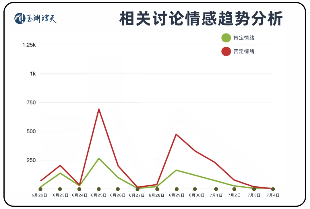 “第一讲”推出后,6月23日,消极情绪与积极情绪还几乎各占一半,到了6月29日,“第三讲”推出后,消极情绪与积极情绪已经明显拉开了差距。