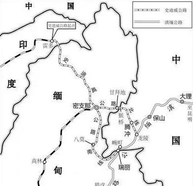 在二战时期,为了中缅战场的后方支援,在缅北除了有一条闻名世界的"滇缅公路"外,还有一条堪称是生命线的-史迪威公路。史迪威公路是1944年中国军队在滇西和缅北大反攻胜利后修通的自印度东北部雷多Ledo终至中国云南省昆明的公路。它从印度东北部边境小镇雷多出发,至缅甸密支那后分成南北两线,南线经八莫、南坎至中国畹町;北线经过缅甸甘拜地,通过中国猴桥口岸、经腾冲至龙陵,两线最终都与滇缅公路汇合。