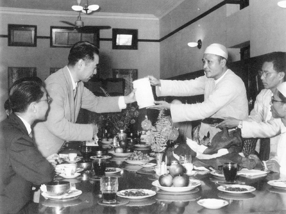 1954年6月,周恩来访问缅甸时同缅甸总理吴努在一起。