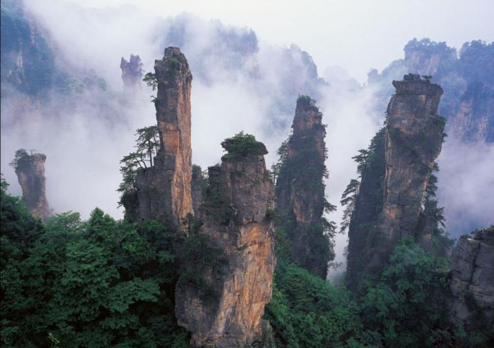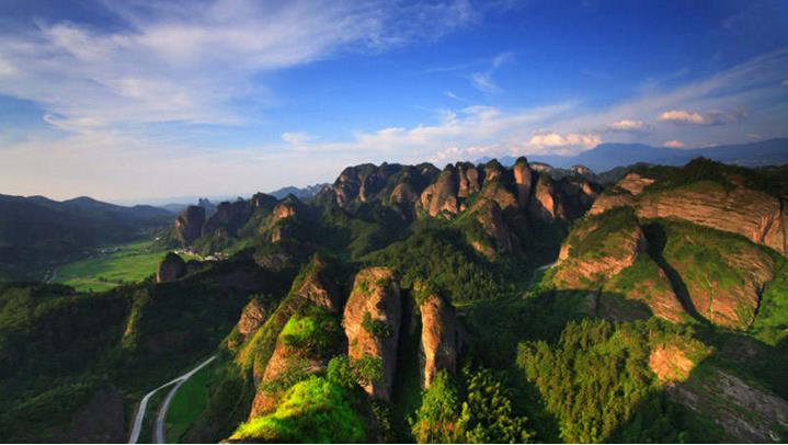 40.湖南崀山、广东丹霞山、福建泰宁、贵州赤水、江西龙虎山、浙江江郎山丹霞地貌