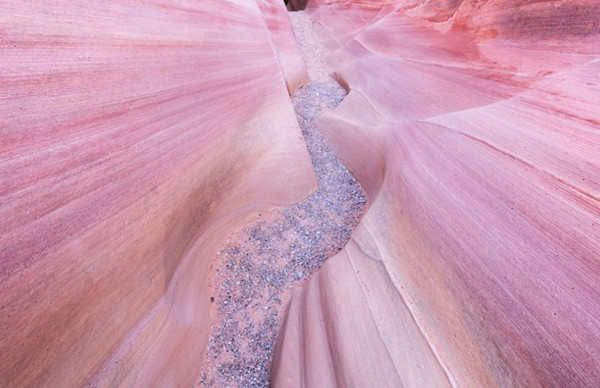 内华达州火焰谷州立公园(Valley of Fire State Park)内的一处小峡谷,粉红色的条纹让人感觉似乎正在太空中穿行。