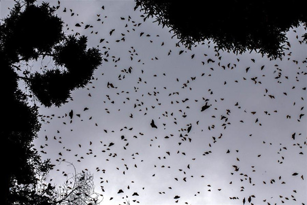 这是12月19日在墨西哥米却肯州的欧亚梅尔杉树林中拍摄的黑脉金斑蝶。