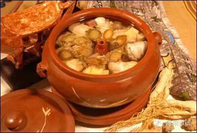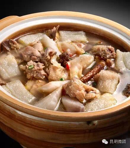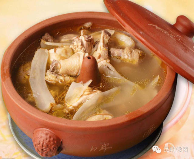 汽锅鸡,用蒸汽蒸熟的鸡肉。