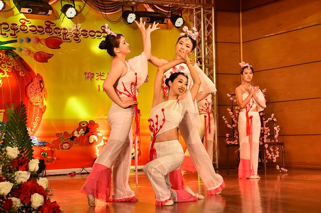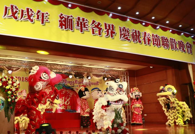 晚会现场气氛热烈,喜庆祥和。各华社侨团和中缅文艺演出团体表演了充满浓郁年味和民族特色的歌舞。与会嘉宾共话未来,共同祈福狗年新春,共祝中缅关系明天更加美好。