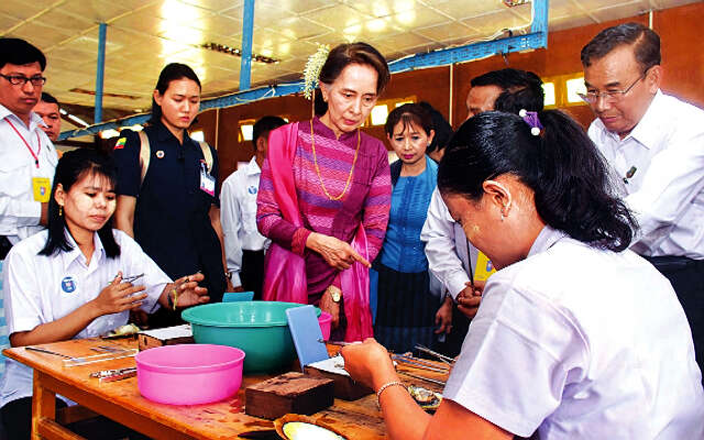 国务资政杜昂山素季参观视察岛上的珍珠生产作业情况