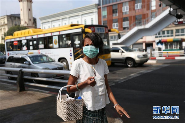 3月29日,在缅甸仰光,一名女子佩戴口罩出行。新华社发(吴昂 摄)