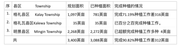 专区内的3个县区内,不论是规划面积还是已种植面积,以明景县区这木豆种植面积为最多,目前其完成的种植面积占了全专区种植面积的近 ¾ 的比例。