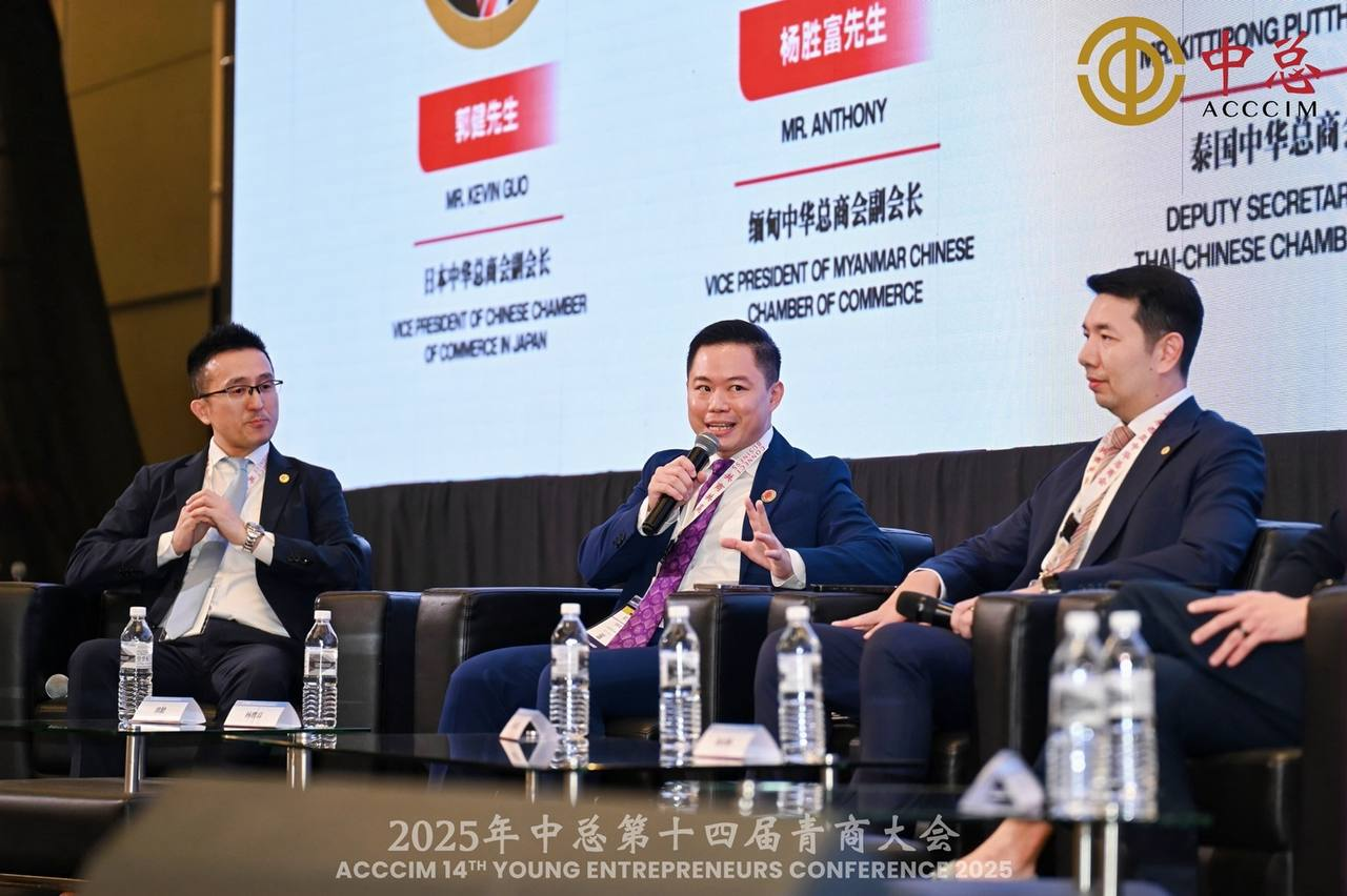 2025年8月14日至16日,马来西亚中华总商会(中总)在吉隆坡成功举办第十四届青商大会暨系列重要活动。本届大会以“立足东盟,辐射世界”为主题,汇聚了来自东盟各国、中国、日本等地的逾千名青年企业家代表。缅甸中华总商会代表团由副会长兼秘书长杨胜富率领青年委员会副主任周茂华、委员杨云海、陈龙昌、许小龙等,全程参与了欢迎晚宴、2025年马来西亚中华总商会(中总)第十四届青商大会、中总卓越青商楷模颁奖典礼及2025东盟及区域伙伴青商联席会议四大核心议程,与各地代表进行了富有成效的交流,并分享了缅甸的发展经验。“透视全球资本市场——青商如何扬帆出海迈向国际”论坛上,杨胜富副会长作为主讲嘉宾分享经验。