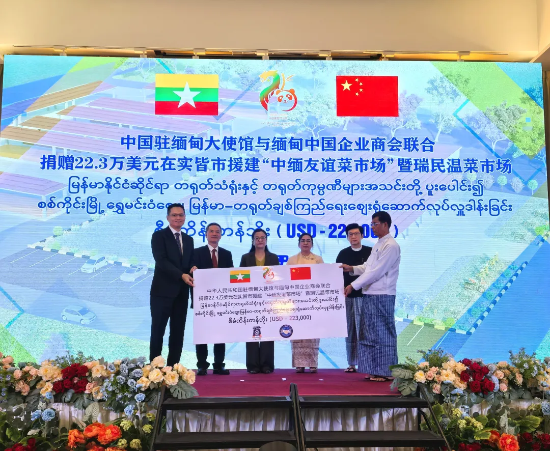 活动中,中国驻缅甸大使馆与缅甸中国企业商会联合捐赠22.3万美元,用于在实皆市援建“中缅友谊菜市场”暨瑞民温菜市场,这一善举生动且具体地彰显了在缅中资企业积极履行社会责任的担当与作为。