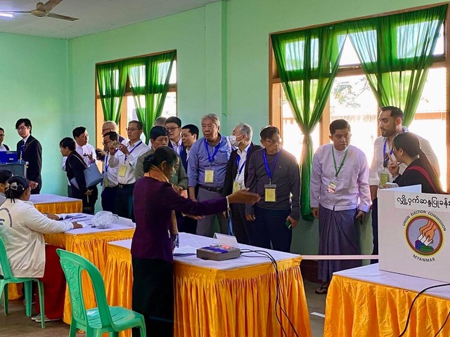 国际选举观察员与外交人员观摩缅甸大选投票流程