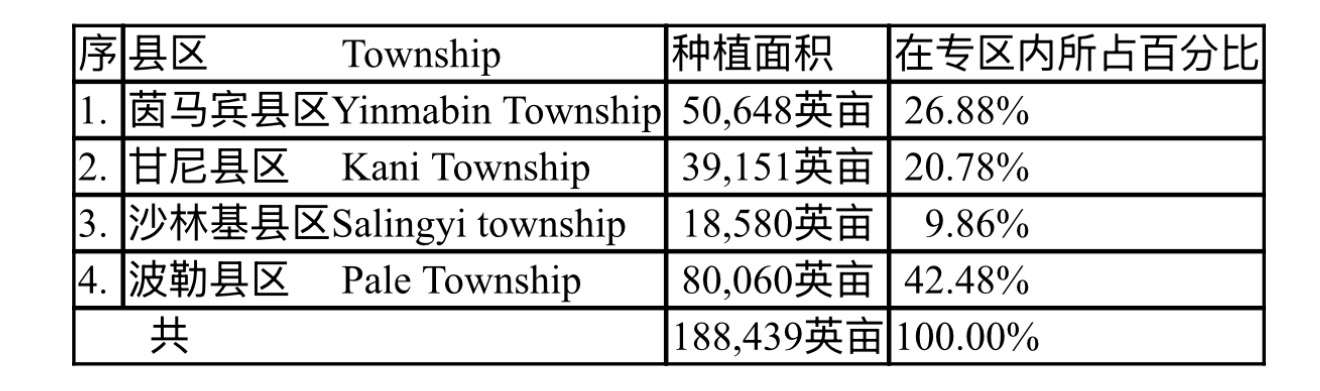 茵马宾专区内的各县区种植的雨芝麻面积如下表:
