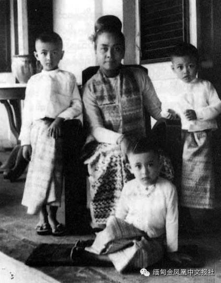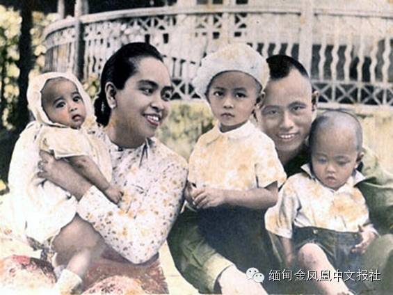 1947年,昂山素季(前)与父母兄弟合影,不久后其父遭暗杀。