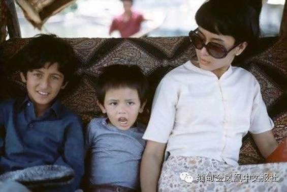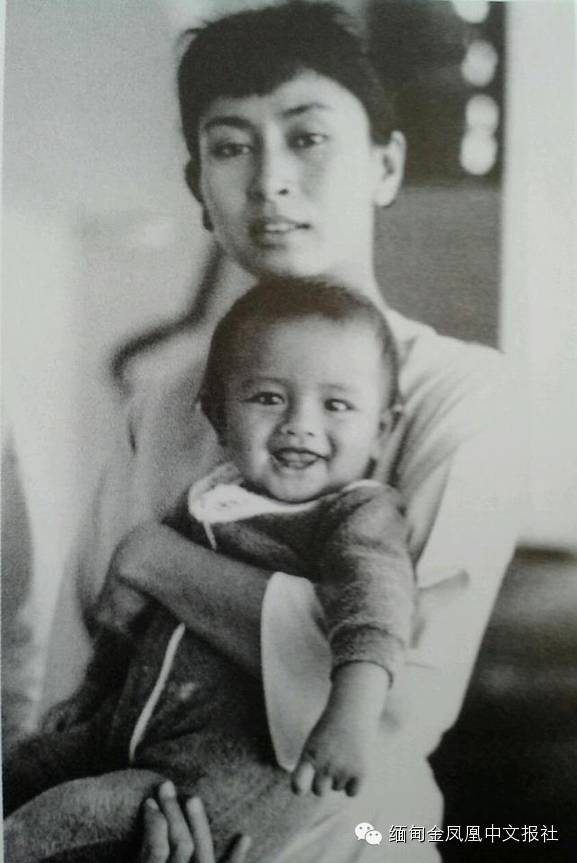 1974年,昂山素季夫妇带着儿子亚历山大回到仰光,昂山素季母亲首次见到外孙。