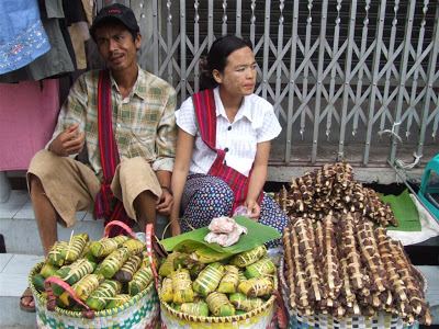 在我们家乡, 香蕉全身皆宝, 果实摀熟生吃, , 晒干当点心, 小时候常见阿姨当菜拌飯吃。煮熟暗红色垂蕾, 沾虾醬吃。树秆剝去外层, 取心切片做魚汤米线汤料, 甚至1960年, 我在海里岸边等待洋轮搭乘, 乘汽船上 僻村吃魚汤米线, 发现汤内作料中有香蕉串柄薄片, 十分罕见。记得童年时代, 天一亮, 米糕小贩, 头顶热气腾騰甜糕到家, 先鋪蕉叶, 再切米糕, 菜市街摊, 普遍用蕉叶包装。缅甸粽子, 糯米为料, 香蕉做餡, 另一种叫” 莫拍痛”, 糯米粉为料, 椰丝,芝痳, 白糖做餡, 蕉叶包装, 家喻户曉, 香甜可口,屬缅甸名食。