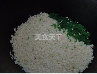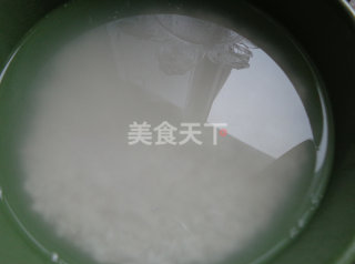 2竹香米洗净和糯米放进电饭锅中,放适量的水,蒸熟