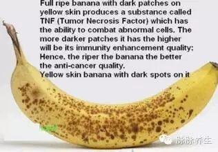 香蕉愈成熟即表皮上黑斑愈多,它的免疫活性也就愈高。所以从现在开始要吃熟一点的香蕉唷!