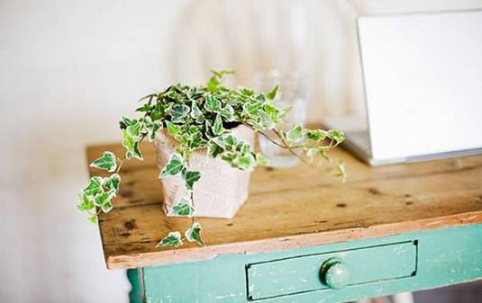 常春藤是目前吸收甲醛比较有效的室内植物,24小时光照条件下还可吸收室内90%的苯,它还能吸附微粒灰尘。