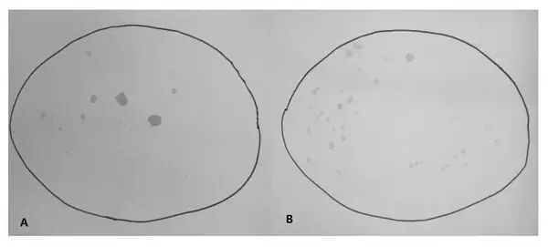 图2。“虹吸式”马桶(A)与“无框式”马桶(B)溅水程度的比较 。