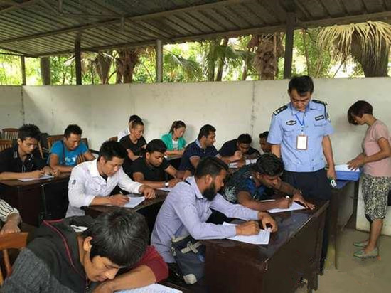 在瑞丽市做珠宝生意的缅甸小伙子阿力带着他的两个朋友来到了位于云南瑞丽市公安局交警大队姐告中队的摩托车驾驶人考试培训场,报名参加摩托车驾驶证的考试。