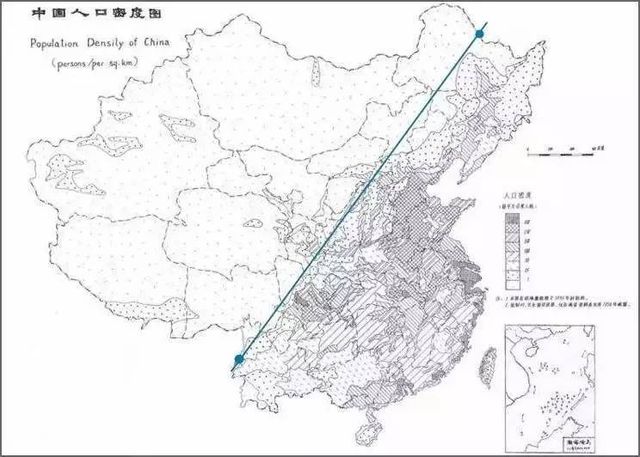 “胡焕庸线”,也叫“黑河-腾冲线”