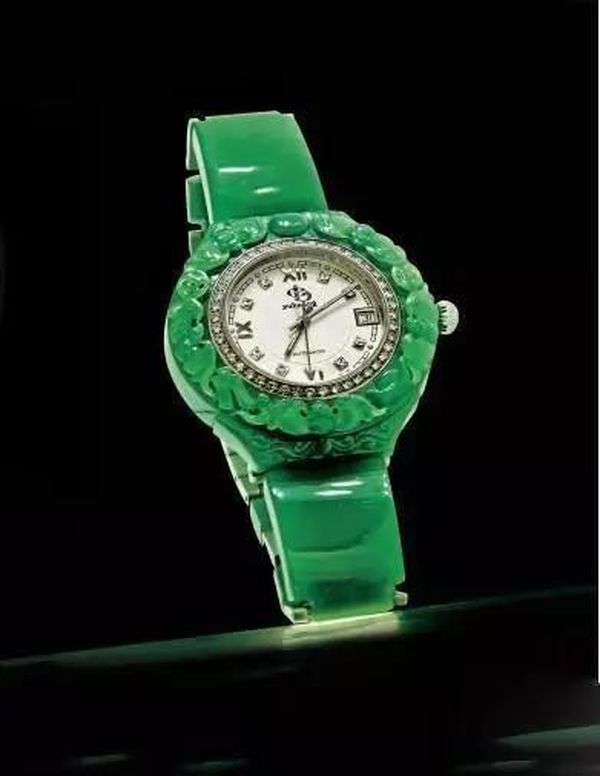 大家经常接触到的翡翠造型都是一些传统意义上的造型,像用翡翠制作的手表可不是很常见,也不会有人会轻易拿来做尝试。可就有人这样做了。