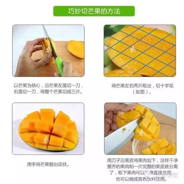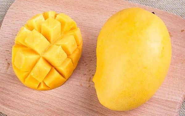 4、看水分。正常采摘的芒果,水分足,刀切时润物无声。而落地果,水分严重不足,刀切时吱吱作响。