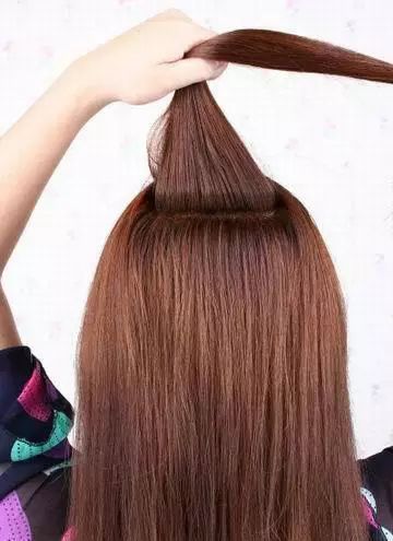 1、先把整个头顶的头发分成三份,顶部的发量要略少一些,中间一部分头发要多一些,最下面的一部分头发也要少一些。