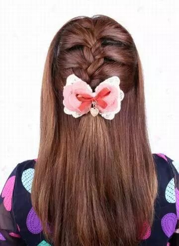 第二款:接上第一款发型,解下皮筋再把余下发束编普通麻花辫就可以了!