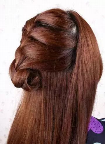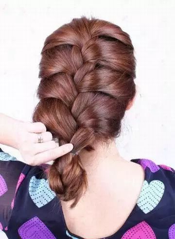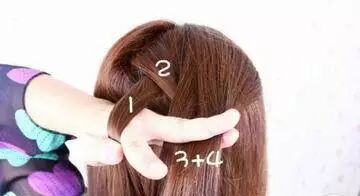 step5:加在上次三股其中的一股合成一股,将发束4加在发束3。