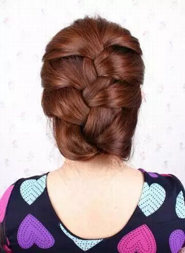 5、编到最后把剩下的头发全部编紧,然后固定到头发的最下面,固定成圆形就可以了,最后整理一下头发的松紧度,把碎发都收干净。