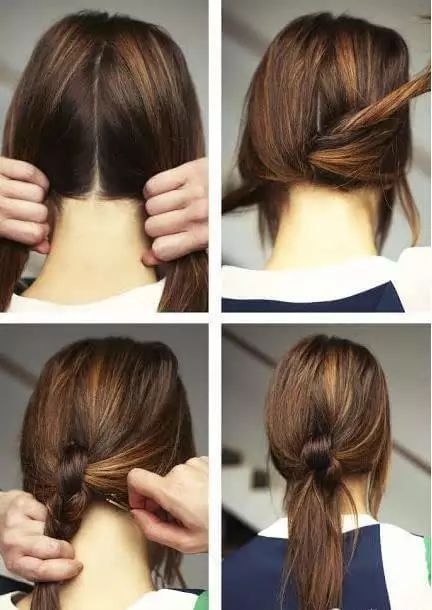它利用头发相互打结后形成的低马尾,看上去随意慵懒,但又独具匠心。打造方法也非常简单,但比较适合发量稍多一些的人。