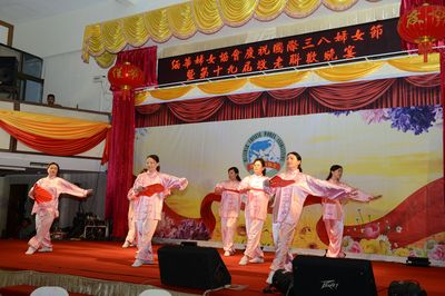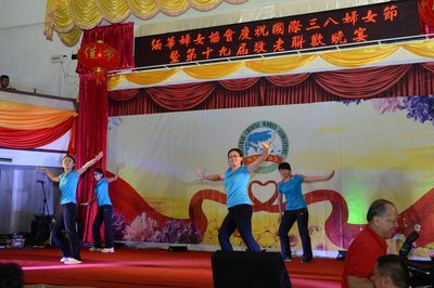 一年之际在于春,三月,万物复舒,三月,春回大地。在这充满无限生机和魅力的缅华大地上,风光无限,春色满园。妇女协会的发展,缅华社会的发展,离不开祖藉国的关怀和支持。更离不开历任使领馆工作人员的无私奉献。使馆的舞蹈为整个晚会添上了浓墨重彩的一笔,健身操活力四射,动感无限:太极扇松柔慢匀、开合有序、刚柔相济的动作更是引人入胜,回味无穷。景栋妇女会的陈丽珍阿姨高歌一曲,唱出了现代妇女对美好生活的追求和向往。在妇女协会一曲走向复兴的合唱中,晚会接近尾声。