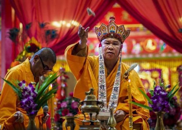 当地时间2017年9月4日,泰国曼谷的水尾圣娘庙(Chaomae Thapthim Shrine)举行年度食物分发活动,中国和尚主持仪式。据悉,一年里,当地人会把米或者油捐给当地的中国寺庙,和尚会在食物分发时,将这些赠物送给需要的穷人,当天约有1000人来领食物。据悉,在泰国曼谷,食物分发(捐赠)一直是当地的中国寺庙的一项传统。