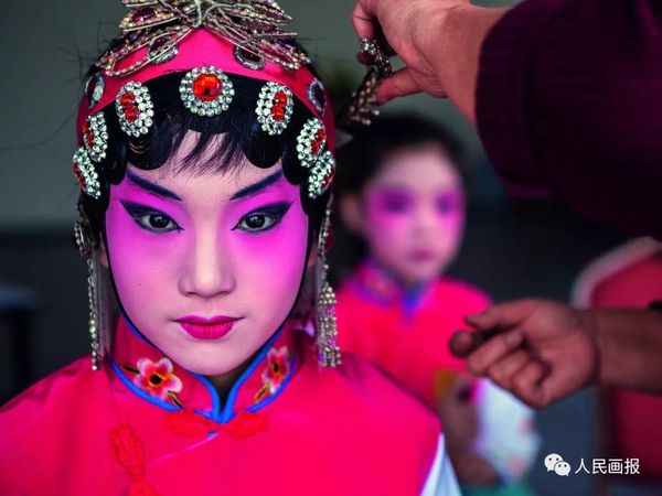 中国北京,京剧演员在演出前化妆。摄影 马耕平/人民画报