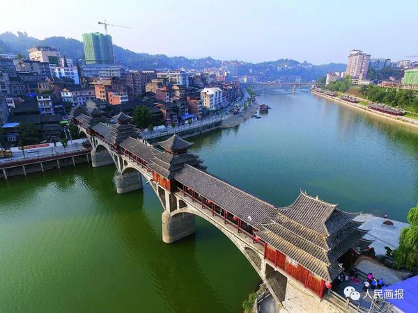 中国贵州锦屏县,横跨清水河两岸的风雨桥。摄影 万全/人民画报