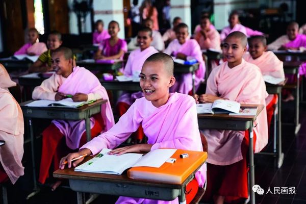 缅甸仰光的中缅合资学校——卓越语言教育中心在寺庙学校开设公益中文课程。摄影 秦斌/人民画报