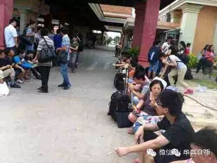 图为刚刚逃离越南的越南平阳省慧春鞋厂员工们,坐在金边的某酒店大堂休息。回忆起越南的经历,依然心有余悸。