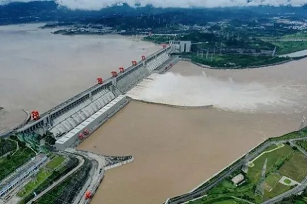 图为长江2020年第5号洪水洪峰抵达三峡枢纽工程。摄影:汤伟