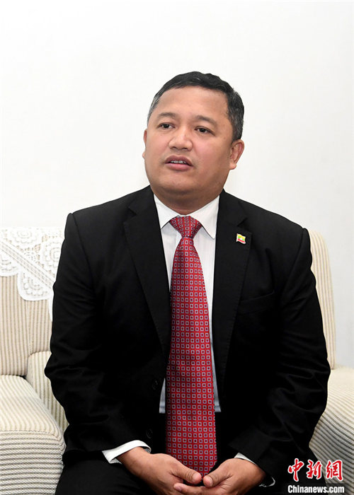图为缅甸驻南宁总领事馆总领事梭岱南接受中新网记者专访。 俞靖 摄
